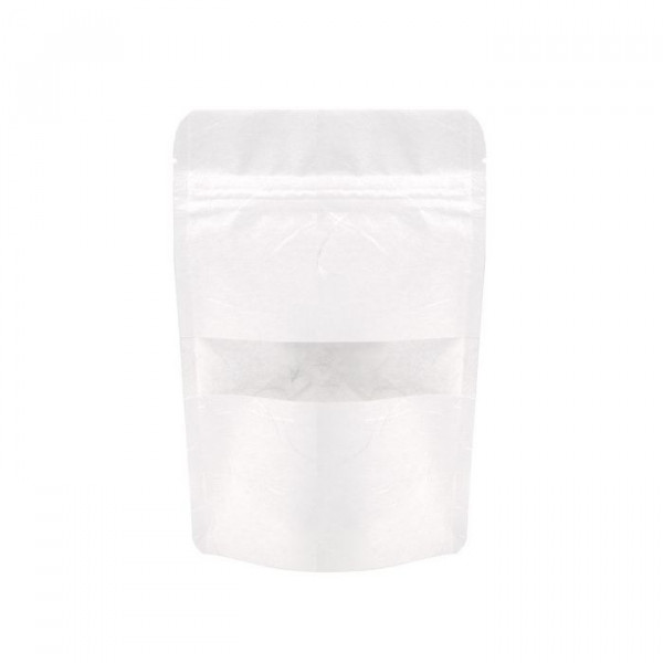 This 102 x 60 x 152mm Rice Paper Zipper pouch holds 2oz/57g of dry goods (based on whole coffee beans). ZBGR2W is the smallest of our rice paper pouches and is ideal for holding smaller items like candies, beads, snacks, mixes and more. This white rice paper pouch has a unique fiber pattern that will provide a "high end" look for your product. ZBGR2W comes up with a resealable zipper and can be heat sealed for the retail environment. Convenient tear notches are located at the top of the bag, allowing for ease of use after purchasing. Rice paper pouches are food safe.