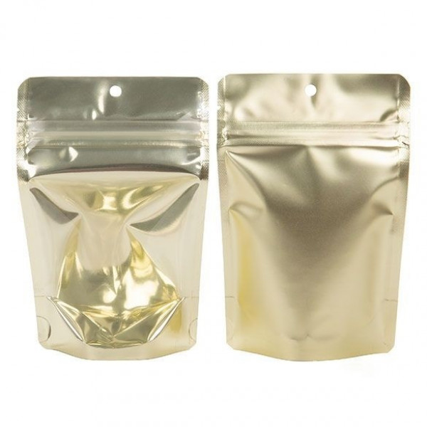 Standbodenbeutel Transparent/Matt Gold 10,2x6x15,2cm | 57 Gramm (100 Stück) [ZBGMG2]