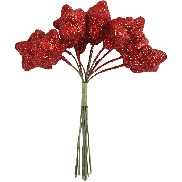 Star, D: 25 mm, 12 pcs, christmas red [HOB-504434]