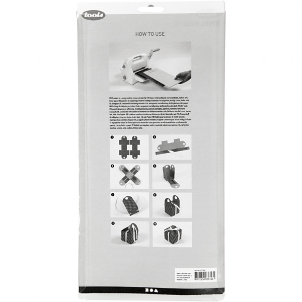 Template for carving motifs in heavy materials like EVA foam, metal cardboard, heavy cardboard, leather, cork, felt or paper. Used in punching machine - item no. 11761 and 11792.