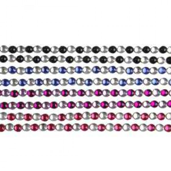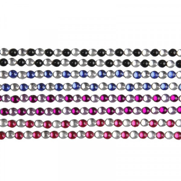 Selbstklebende Strassstein-Ketten - die perfekte Verzierung für Karten und Alben. Packung mit 2 Blättern à 4 Farben und 8 Ketten.