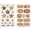 Selbstklebende Motive aus mattem Papier. Alle Details mit Glitter.