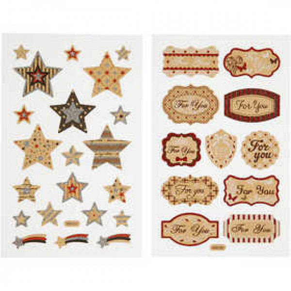 Sticker, Blatt 10x16 cm, Sterne und Tags "For You", 4Bl. [HOB-29105]