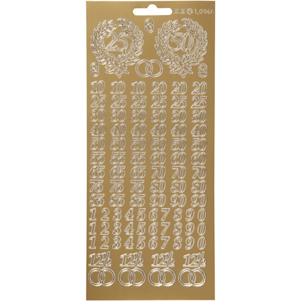 Sticker, Blatt 10x23 cm, Gold, Jubiläums-Zahlen, 1Bl. [HOB-170216]