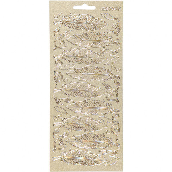 Sticker, Blatt 10x23 cm, Gold, perlemor guld, Federn, 1Bl. [HOB-170190]