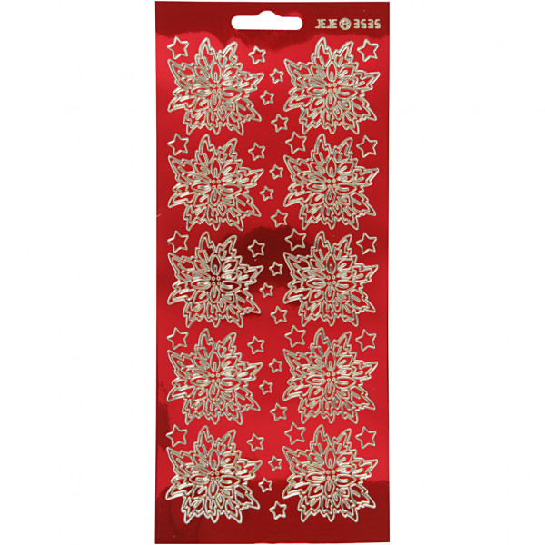 Sticker, Blatt 10x23 cm, Gold, Transparent Rot, Weihnachtssterne, 1Bl. [HOB-170144]