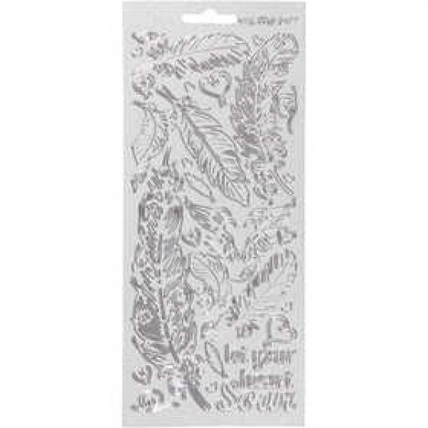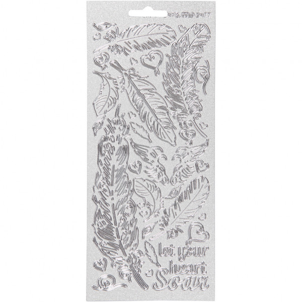 Sticker, Blatt 10x23 cm, perlemor sølv, Silber, Federn, 1Bl. [HOB-170130]
