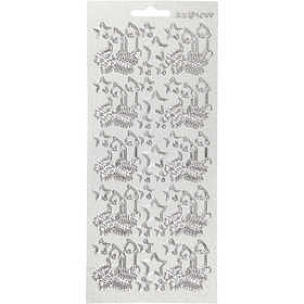 Sticker, Blatt 10x23 cm, Silber, Weihnachtskerzen, 1Bl. [HOB-170016]