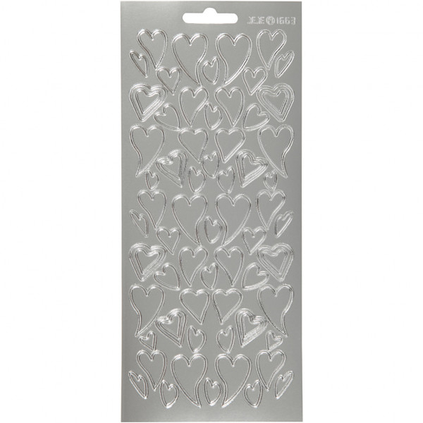 Sticker, Blatt 10x23 cm, Silber, Herzen, 1Bl. [HOB-170105]