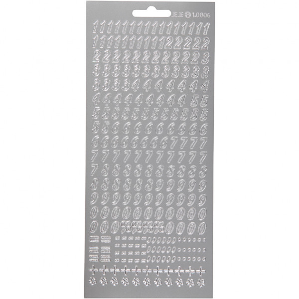 Sticker, Blatt 10x23 cm, Silber, Zahlen, 1Bl. [HOB-170213]