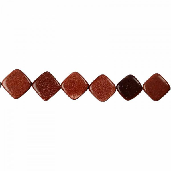 Flach, quadratisch, mit Goldglitter-Effekt und diagonal gebohrtem Loch.