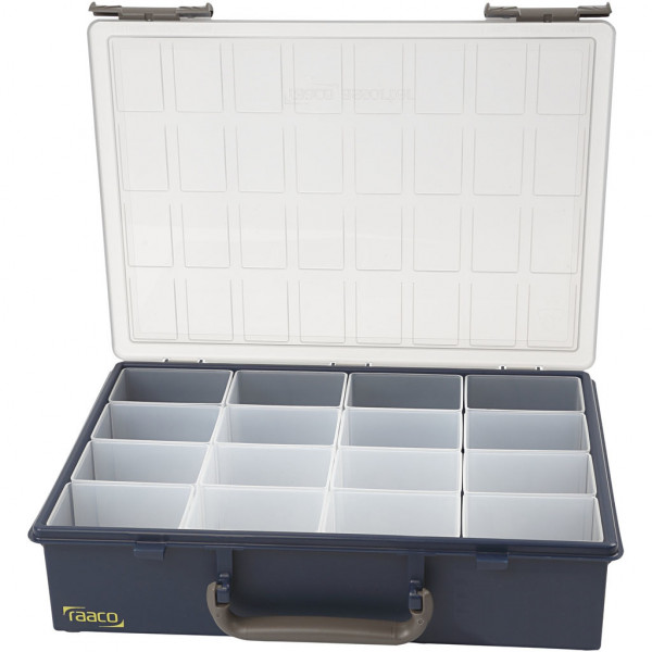 Raaco - aus Polypropylen (PP) - mit Schiebeverschluß und 16 losen Einsetz-Boxen.