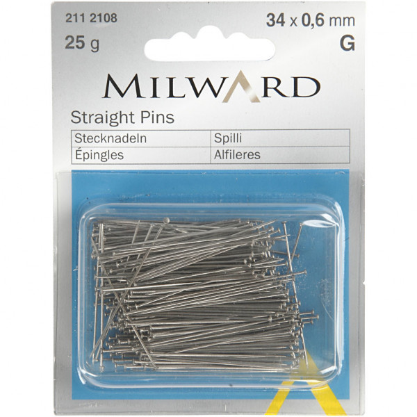 Stecknadeln , L 34 mm, Stärke: 0,6 mm, Silber, 25g [HOB-41125]
