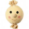 Mit Stoff bekleidete Kugel mit gemaltem Gesicht und Nase.