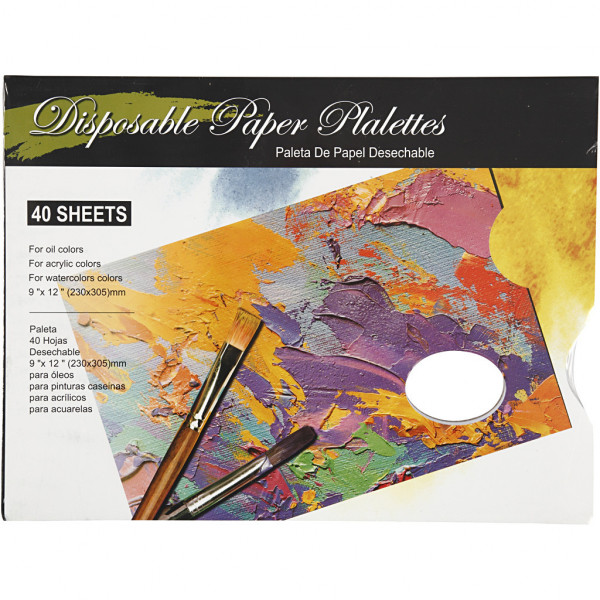 Palette als Papierblock mit 40 Blättern Wachspapier und Daumenlöchern. Einfach nach Gebrauch abreißen.
