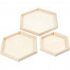 SechseckigeTabletts in 3 verschiedenen Größen aus hellem Holz.