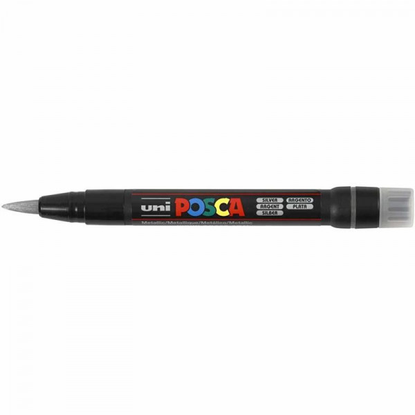 Uni Posca Marker , Strichstärke: 1-10 mm, PCF350 , Silber, Pinsel, 1Stck [HOB-271805]