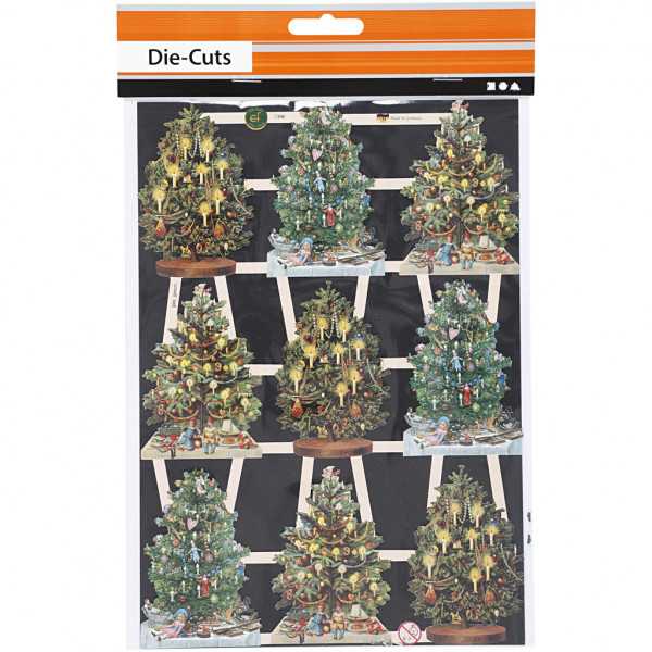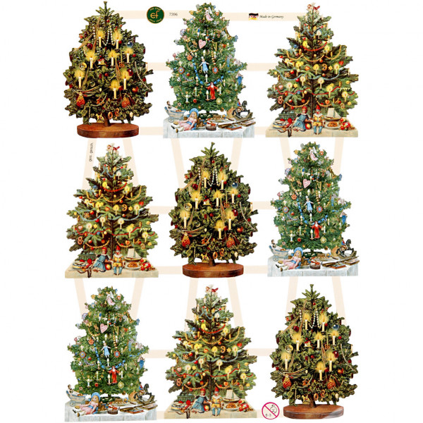Vintage-Glanzbilder, Blatt 16,5x23,5 cm, Weihnachtsbaum, 3Bl. [HOB-19303]