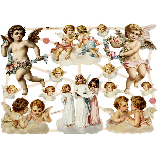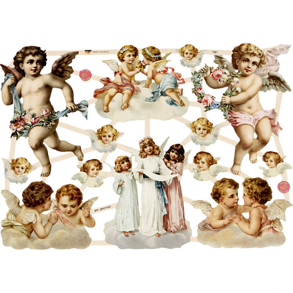 Vintage-Glanzbilder, Blatt 16,5x23,5 cm, Große Engel, 3Bl. [HOB-19331]