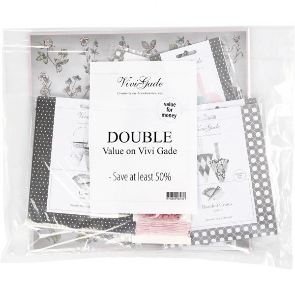 Inhalt (kann variieren): Designpapier, Decoupage-Papier, Tüten, Anhänger, Ornamente etc. Spar-Pack: doppelt soviel Inhalt wie gewöhnlich zum halben Preis = Ersparnis 50%.