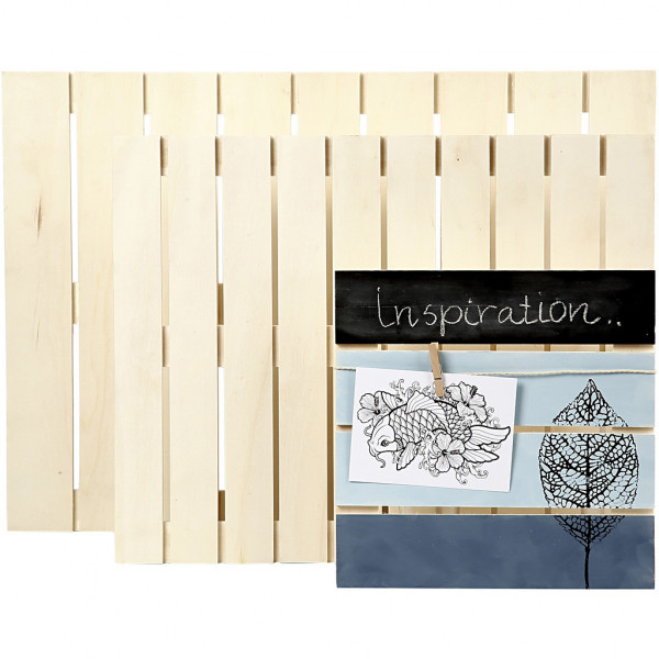 Lamellen-Panel in hellem Holz, montiert auf einem Rahmen, geeignet für vertikale und horizontale Aufhängung.