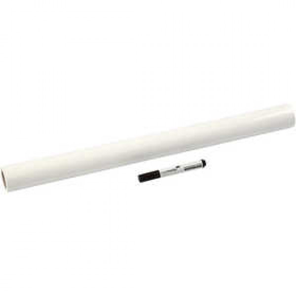 Eine Rolle Whiteboard-Folie mit 25 perforierten, statisch aufgeladenen Blättern - haften auf den meisten Oberflächen. Packung enthält einen schwarzen Whiteboard Marker.