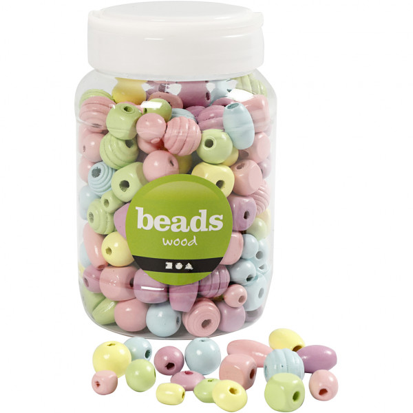 Wooden Beads, D: 10-15 mm, hole size 3-5 mm, 400 ml [HOB-684690]