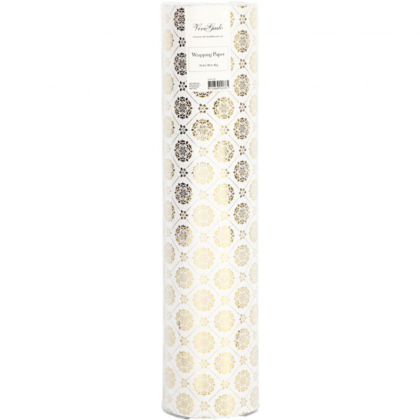 Geschenkpapier, B 50 cm, 80 g, Weiß, Gold, Kacheln, 100m [HOB-19199]
